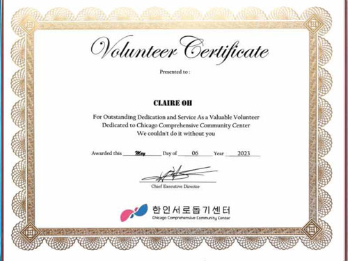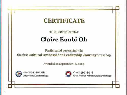 I started volunteering at the cultural center as an eighth grader cleaning and organizing and realized that the cultural center needed to have a program to house the next generation of youths. I and two of my friends established a youth volunteer program, now known as the Junior Ambassador of Korean Cultural Center of Chicago. As the vice-president, I had the privilege of contributing to projects that celebrated and preserve Korean culture.